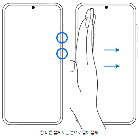 - 기본 캡처 실행: 버튼 캡처 또는 손으로 밀어서 캡처