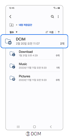- 파일 관리 앱 경로: 내 파일 > 내장 저장공간 > DCIM > Screenshots