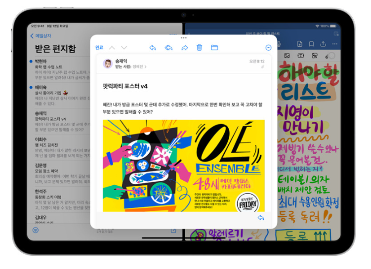 운영체제 iPadOS 18: 다기능 내장 앱 및 강력한 생산성 지원