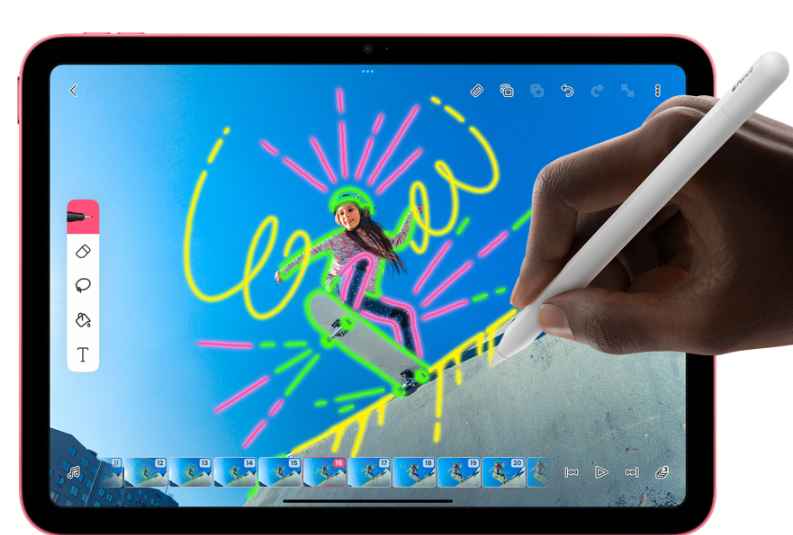 아이패드 10세대는 12MP 울트라 와이드 전면 카메라와 12MP 와이드 후면 카메라를 탑재하여 사진과 동영상 촬영에서 뛰어난 품질을 제공합니다. 전면 카메라는 센터 스테이지 기술을 지원하여 화상 통화나 셀피 촬영 시 사용자를 화면 중앙에 자동으로 맞춰줍니다.