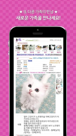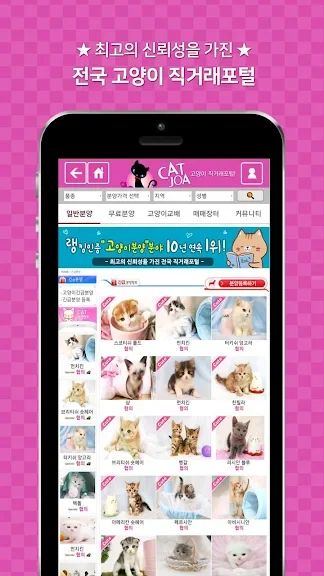 아래는 캣조아-고양이분양 전국고양이분양 직거래 종합포털 어플에 대한 스크린샷 정보입니다.