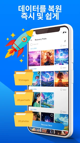 사진 및 비디오 복구: 이 어플리케이션을 사용하여 모바일 장치에서 삭제된 모든 사진과 비디오를 빠르고 효과적으로 복구할 수 있습니다.