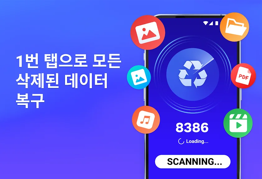 사용이 매우 쉽습니다. 스캔 버튼을 누르기만 하면 삭제된사진복구가 기기에서 모든 삭제된 및 잃어버린 파일을 자동으로 찾아 복원합니다. 그런 다음 즉시 복원하거나 영구적으로 삭제할 수 있습니다.