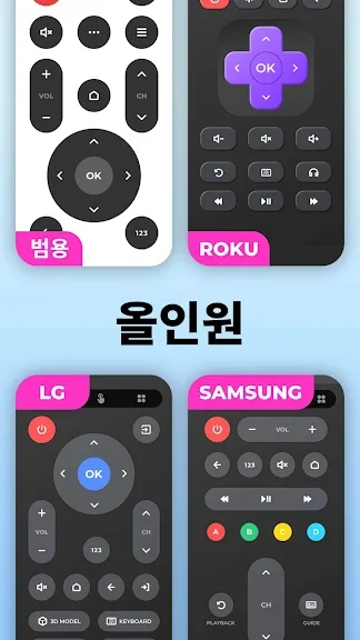 TV용 리모컨 - 모든 TV 지원 어플에 대한 스크린샷 정보가 필요하시다면 아래 이미지를 참고하시기 바랍니다.