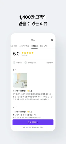- 불투명한 방문 견적 없이 앱에서 정확한 비용을 확인할 수 있어요.