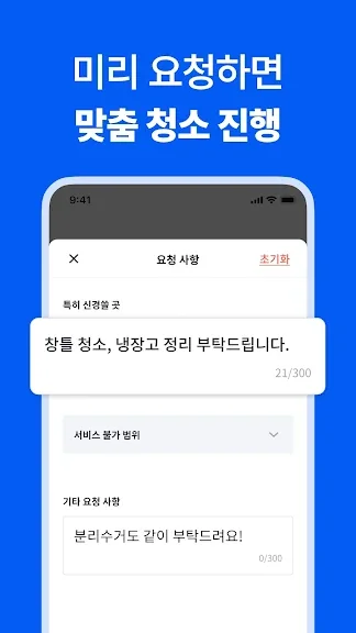 - 가정집과 사업장 청소를 선택할 수 있어요