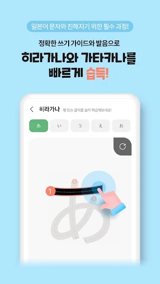 일본어 발음을 듣고, 직접 따라 써 보면서 학습할 수 있어요.