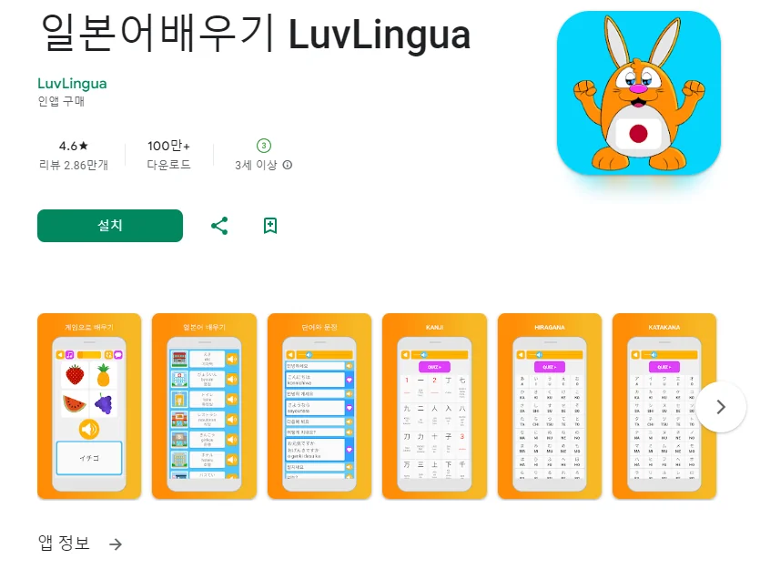 아래는 일본어배우기 LuvLingua 어플에 대한 스크린샷 정보입니다.