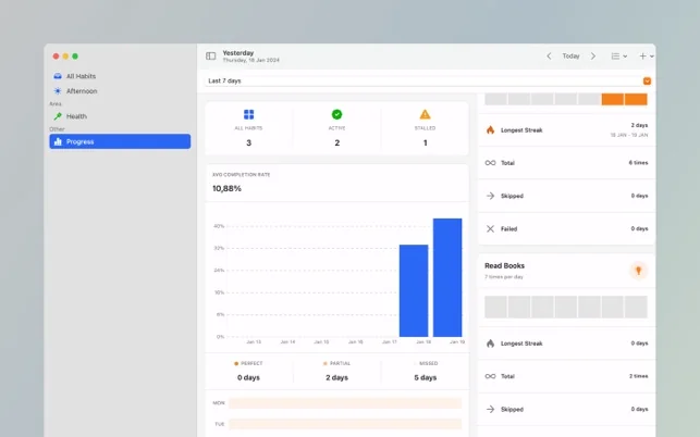 Habitify는 개인 성장을 간소화하는 사용자 친화적인 습관 추적기입니다. 일상적인 습관과 라이프스타일을 손쉽게 개선하면서 영감과 집중력을 유지할 수 있도록 설계되었습니다.