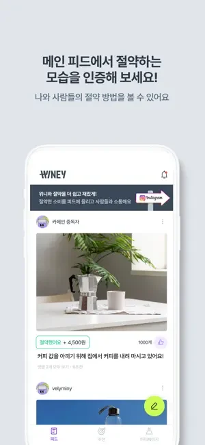 - 절약을 실천한 사진, 절약한 금액, 절약 방법을 텍스트로 업로드하여 마이 피드를 꾸며볼 수 있어요.
