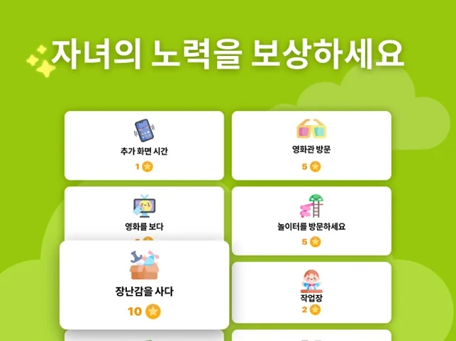 작동 방식은 간단합니다: 해야 할 일을 목록으로 만들고, 완료 시 받을 점수를 설정합니다. 아이가 더 많은 일을 완료할수록 더 많은 점수(별)를 얻고, 이는 용돈, 새 장난감, 특별 간식 같은 보상으로 이어집니다. 보상 차트는 진행 상황을 재미있고 동기 부여적으로 추적할 수 있게 해줍니다!