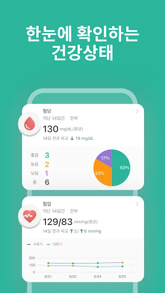 혈당과 생활 습관과의 관계를 실시간으로 확인할 수 있어요.