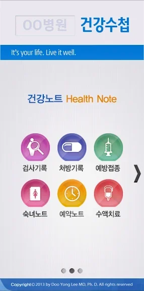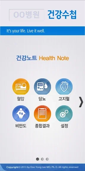 건강수첩은 현직 내과의사가 진료현장의 경험을 반영하여 만든 종합적인 개인 건강관리 어플리케이션입니다. 혈압관리, 혈당관리, 고지혈관리, 체중관리, 예약관리, 기타검사관리, 처방전저장, 숙녀노트, 동맥경화위험도, 비만도, 대사증후군 등 다양한 메뉴가 포함되어있습니다.