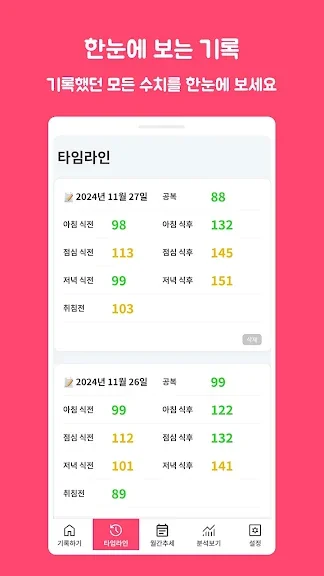 공복 부터 식전, 식후 기록을 쉽게 할 수 있어요.