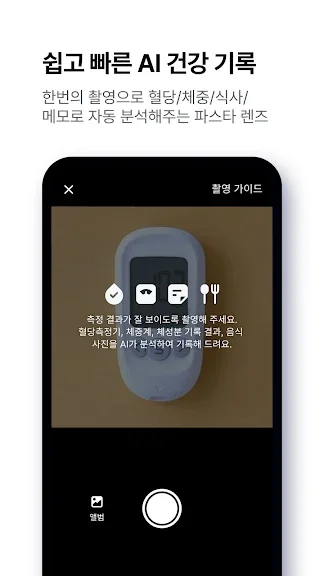 사진 촬영 한번으로 더 빠르게 건강 데이터를 기록하세요.