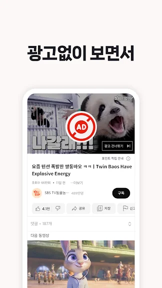 * 동영상 중간에 광고 없음