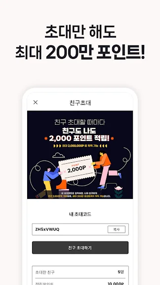 - 초대된 친구한테도 포인트 2,000P 적립!