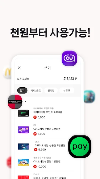 - 적립된 포인트로 네이버페이, 상품권 등 기프티콘 교환 가능