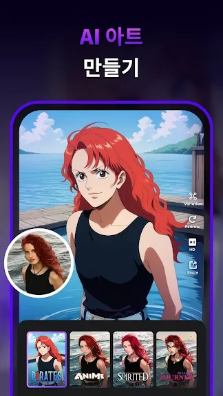 🎨 AI 애니메이션 필터가 당신의 꿈을 현실로 만들어주고, 당신을 좋아하는 만화나 애니메이션 캐릭터로 변신시켜주는 매혹적인 애니메이션의 세계에 빠져보세요. 애니메이션 사진에 추가하고 싶은 세부 사항을 설명하여 외모를 개인화하세요.