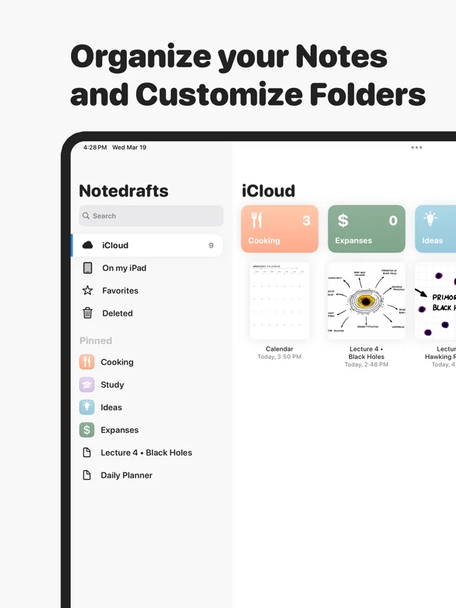 Notedrafts is a powerful note-taking app that lets you write, draw, and organize your thoughts across different types of documents. Whether you're marking up a PDF, writing on a large canvas, or taking notes in a long vertical layout, Notedrafts adapts to your workflow.