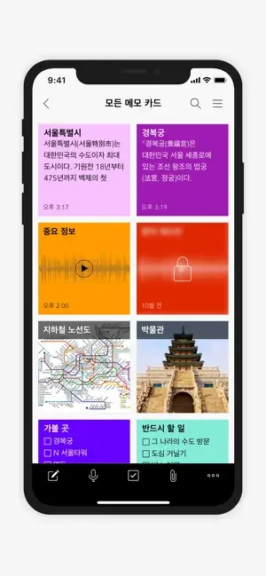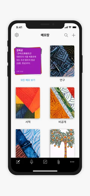 - 모든 노트를 정리된 상태로 유지하고 어디에서나 쉽게 접근하세요.