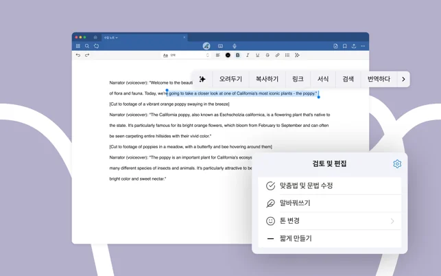 ■ AI를 활용하여 필기를 요약하거나 간추리고, 문체를 손쉽게 일괄 수정하세요.
