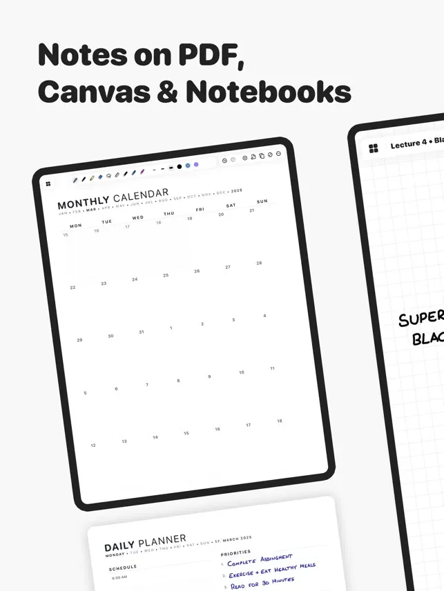 - Choose from daily planners, monthly calendars, habit trackers, and more