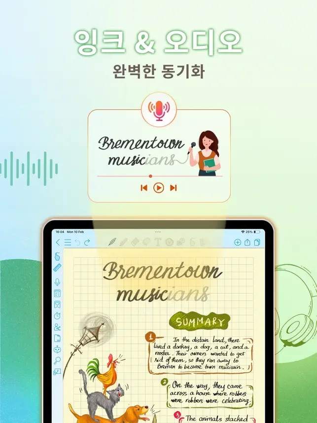 - 노트 내에서 직접 오디오를 녹음하고 동기화하세요.
