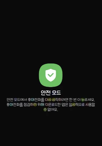 안전모드는 시스템 필수 앱만 실행해, 문제를 일으키는 서드파티 앱을 진단하고 삭제할 수 있는 환경을 제공합니다.
