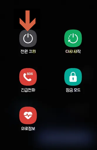 요즘폰 같은경우는 아래 그림과 같이 전원버튼 아이콘을 길게 누르면 안전모드 아이콘이 아래에 나오게 됩니다.