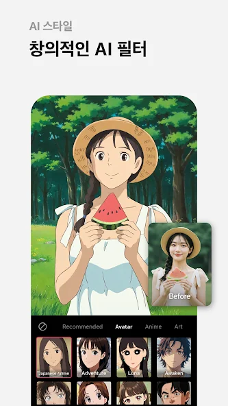 ・ AI 필터: 다양한 스타일의 나만의 캐릭터 만들기