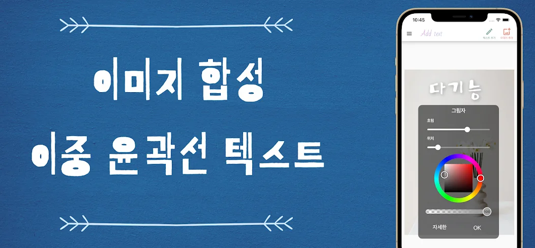 아래는 이미지에 텍스트를 추가 어플에 대한 스크린샷 정보입니다.