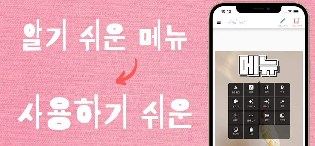 📝 사진에 글쓰기: 몇 번의 터치로 손쉽게 사진에 텍스트를 추가하세요.