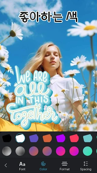 이 앱은 사진에 텍스트를 추가하고 꾸미는 과정을 더욱 쉽고 창의적으로 만들어줍니다. 풀 HD 및 2K 고해상도로 이미지를 저장할 수 있으며, 다양한 필터와 텍스트 효과를 제공해 결과물을 한층 더 돋보이게 만듭니다. 또한, 트렌디한 스티커, 귀여운 이모티콘, 그리고 소셜미디어에 적합한 명언이 포함되어 있어 다양한 방식으로 사진을 편집할 수 있습니다.