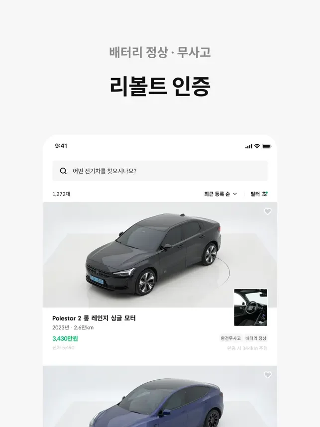 2) 아이폰 리볼트 - 오직, 전기차를 위한 기술 인증 중고차 어플 스크린샷