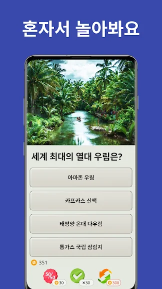 QuizzLand와 당신의 두뇌만 있으면 준비 완료! 다른 플레이어를 기다릴 것 없이 혼자 플레이가 가능합니다.