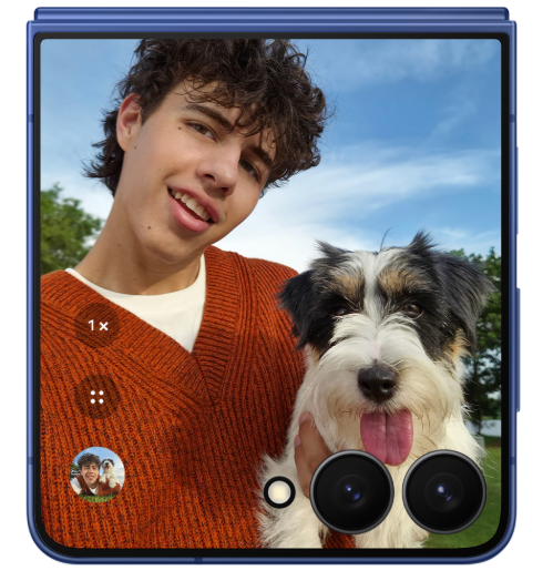 갤럭시 Z 플립7은 5천만 화소의 광각 메인 카메라와 12메가픽셀 초광각 카메라, 그리고 10메가픽셀 전면 카메라로 구성되어 뛰어난 촬영 성능을 자랑합니다. 촬영할 때는 AI 기술이 적용된 ProVisual Engine이 자동으로 색감과 피부 톤, 질감 등을 세밀하게 조절해주어 별도의 편집 없이도 완성도 높은 사진을 손쉽게 얻을 수 있습니다. 또한, 커버 디스플레이를 통해 셀카를 미리 확인하며 촬영할 수 있는 기능이 유지되어 누구나 편리하게 고화질 셀피를 즐길 수 있습니다.